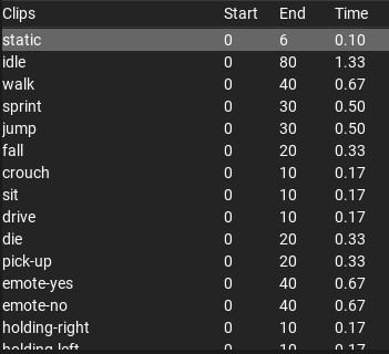 seconds (frame)The animation preview displays the animation on the model included in the asset.