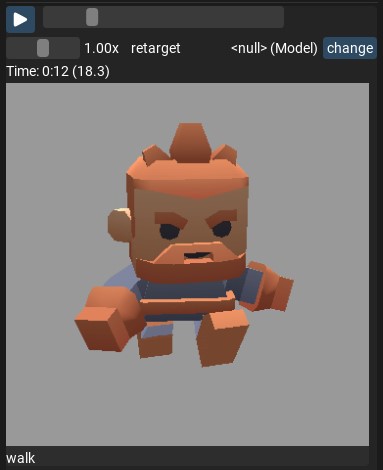change button and select the model in the scene to retarget the animation to that model’s skeleton.
