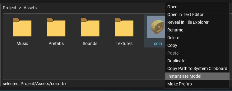 Each model asset contains a prefab resource, which can be instantiated in the scene.