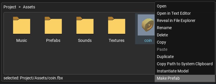 To make the prefab, right-click on the model asset in the project window and select