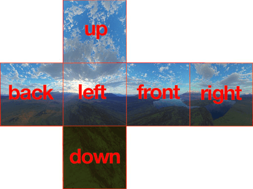 Then, you need six textures, one for each side of the cubemap.